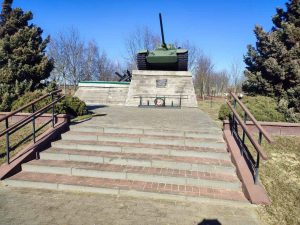 Работники кобринского СООО “ПП Полесье” наводили порядки в сквере им. Героев-танкистов, где установлен танк Т -44 к 60-летию освобождения Кобринщины от немецко-фашистских захватчиков. Сквер разбит на месте первых танковых боев Великой Отечественной войны в честь проявленного героизма, мужества и стойкости воинов 22-й танковой дивизии, оказывавших активное сопротивление врагу в июне 1941 года.
