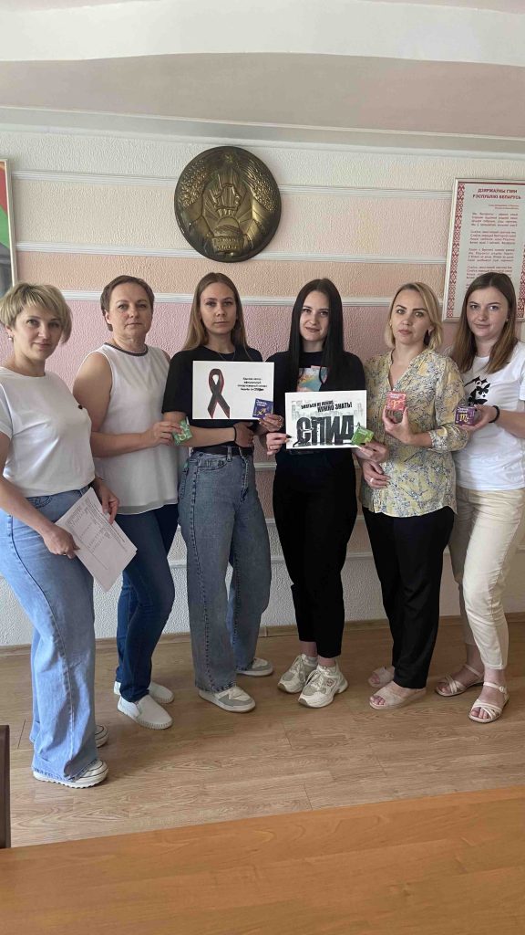 В рамках ежегодной Акции Международного Дня памяти людей, умерших от СПИДа, который традиционно проводится во всем мире в третье воскресенье мая, в Пинской межрайонной торговой базе председателем профкома Валентиной Максимович была проведена разъяснительная беседа с работниками, вывешены плакаты и информация о неутешительной статистике по г. Пинску по количеству ВИЧ-инфицированных. После беседы участникам беседы подарены индивидуальные средства защиты от ВИЧ инфекции.